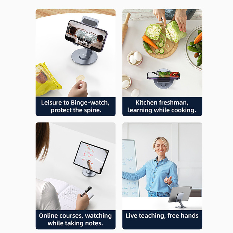 نگهدارنده موبایل رومیزی یوسمز مدل Zj074 یک هولدر رومیزی با کیفیت میباشد که که از جنس آلیاژ آلومینیوم ساخته شده است و به همین دلیل مقاومت بالایی در برابر ضربه و فشار را دارد. هولدر رومیزی یوسمز مدل Zj074 از دو قسمت تشکیل شده که قابلیت تاشو دارد.می توانید به راحتی آن را جمع کرده و با خود حمل کنید. این هولدر بر روی یک سطح قابل چرخیدن قرار دارد و تا 360 درجه قابلیت چرخش را دارد.همچنین بر روی سطوح پشت و پایه های این هولدر از روکش سیلیکون با کیفیت به کار فته است تا از آسیب رسیدن و خط و خش بر روی گوشی جلوگیری شود. با توجه به نوع طراحی این هولدر میتوانید آن را در ارتفاع های مختلف هم تنظیم کنید. ابعاد این هولدر رومیزی 105×110x185 میلی متر بوده و قسمت نگه دارنده آن مناسب گوشی و تبلت هایی از ابعاد 5 الی 14 اینچ میباشد. هولدریوسمز Zj074 مناسب برای کسانی میباشد از گوشی خود زیاد استفاده میکنند و بسیار مناسب فیلم دیدن و تولید محتوا میباشد.