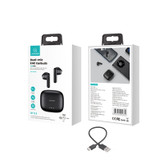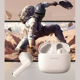 هندزفری بلوتوثی یوسمز مدل US14 یک هندزفری بیسیم از برند معتبر USAMS می باشد.جنس بدنه آن از ABS + pc است که بدنه نسبتاً محکم و با کیفیتی دارد. این هندزفری به دلیل داشتن حالت بازی game mode و صدای چند جهته و فوق العاده واضح و شفاف و انتقال صدا با تاخیر کمتر از 60 میلی ثانیه باعث میشود لذت کامل را از بازی خود ببرید و میتوان این هندزفری را در دستهی هندزفری گیمینگ قرار داد،همچنین شما میتوانید با 4 بار ضربه زدن به پشت گوشی هندزفری حالت game mode آن را فعال کنید. هندزفری بلوتوثی usams با توجه به اینکه از دارای دو میکروفون میباشد که یکی از آنها برای تماس و دیگری برای کنسل کننده نویز است باعث میشود شما یک مکالمه با کیفیت HD داشته باشید. این هندزفری دارای اسپیکرهایی با قطر 13 میلیمتر میباشد که باعث میشود شما موسیقی را با کیفیت بالا و با بیس مناسب گوش کنید و از آن لذت ببرید. کیس شارژ هندزفری us14 دارای ابعاد 55.1×46.7×25.4 میلیمتر میباشد که دارای سایز نسبتا کوچک و مناسبی بوده و طراحی کوچک آن متناسب با مد روز و برای استفاده روزانه بسیار مناسب است.همچنین کیس شارژ این هندزفری دارای یک چراغ می باشد که میزان شارژ کیس را به شما نشان میدهد. هندزفری gaming یوسمز مدل us14 دارای باطری 40 میلیآمپری است به طوری که شما میتوانید پس از این که دستگاه را به صورت کامل شارژ کردید، حدود 5.5 ساعت بتوانید از آن برای مکالمه استفاده کنید یا اگر قصد گوش دادن موسیقی و بازی را دارید، به مدت زمان 7 ساعت برای شما قابل استفاده است. حساسیت این دستگاه 3+108 دسی بل یا 3-108 دسی بل است. هندزفری US14، قابلیت اتصال به گوشیهای اندروید و گوشیهای آیفون را داراست و نسخه بلوتوث آن 5.3 می باشد که از جدیدترین نسخههای بلوتوث می باشد و سرعت انتقال اطلاعات نسبت به نسخههای قبلی تا چند برابر بهتر انجام میشود.