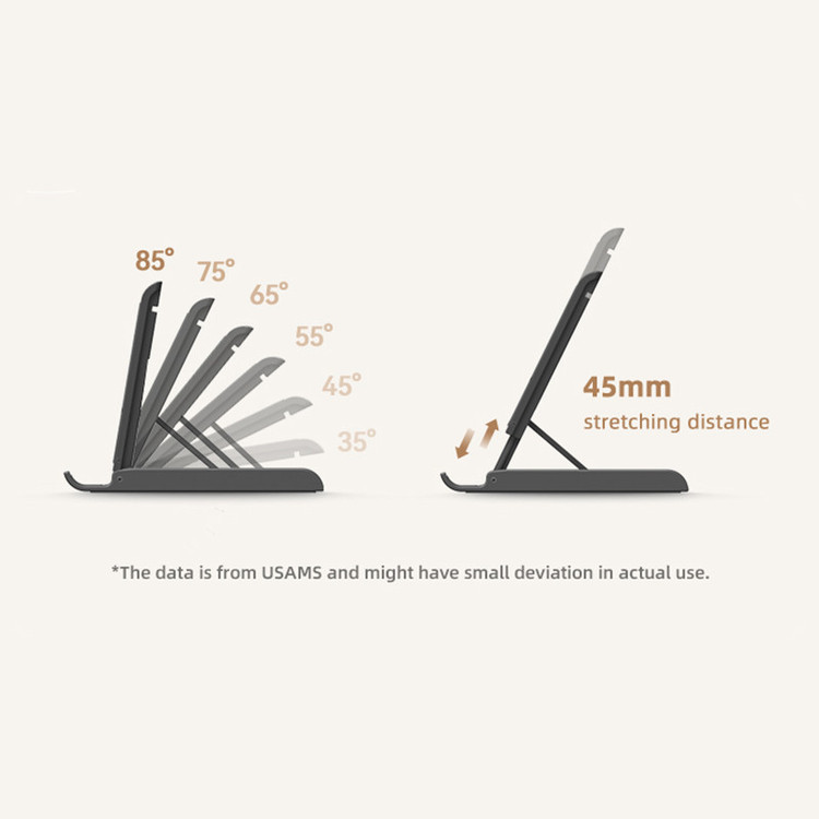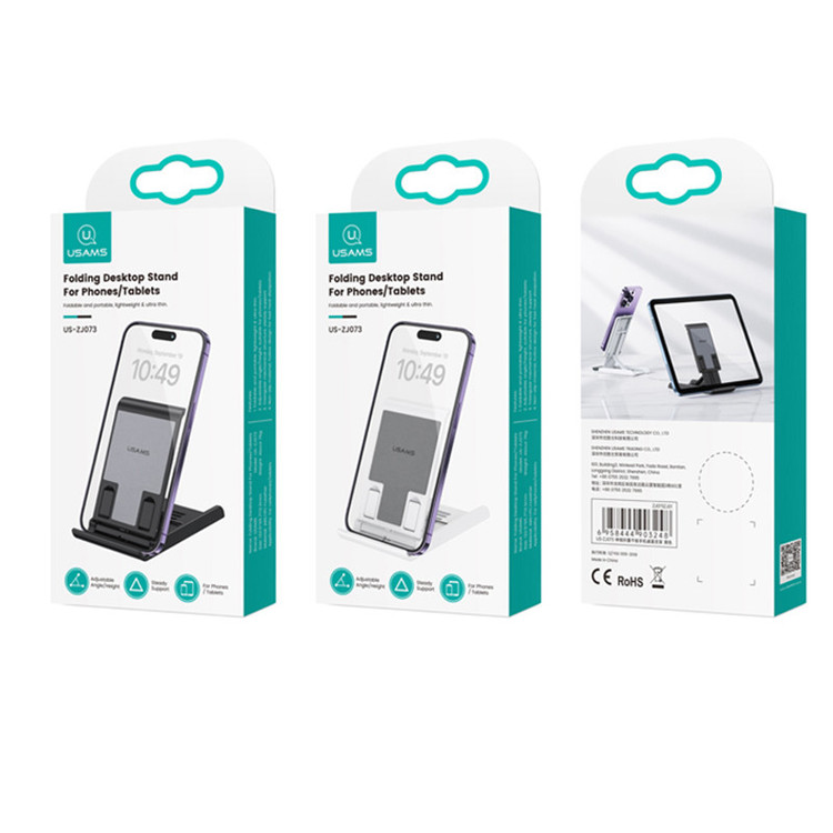 پایه نگهدارنده موبایل یوسمز مدل Zj073 یک هولدر باکیفیت میباشد که از جنس PC و ABS و leather ساخته شده است و به همین دلیل مقاومت بالایی در برابر ضربه و فشار را دارد. نگهارنده موبایل یوسمز مدل Zj073 از دو قسمت تشکیل شده که قابلیت تاشو دارد.می توانید به راحتی آن را جمع کرده و با خود حمل کنید. ابعاد هولدر موبایل و تبلت یوسمز 122×65 میلی متر بوده و سری آن قابلیت تنظیم زاویه بین 35 الی 85 درجه را داشته که کاربر به راحتی بتواند زاویه دید خود را با آن تنظیم کند. بر روی پشتی و پایه های این هولدر موبایل usams مدل zj073 روکشی سیلیکونی قرار دارد که از خط و خش افتادن بر روی گوشی جلوگیری می کند. قسمت انتهای نگهدارنده موبال و تبلت رومیزی usams باز بوده و این امر باعث شده تا بتوانید به راحتی گوشی موبایل و یا تبلت خود را با کابل در حالت استند شارژ بکنید.